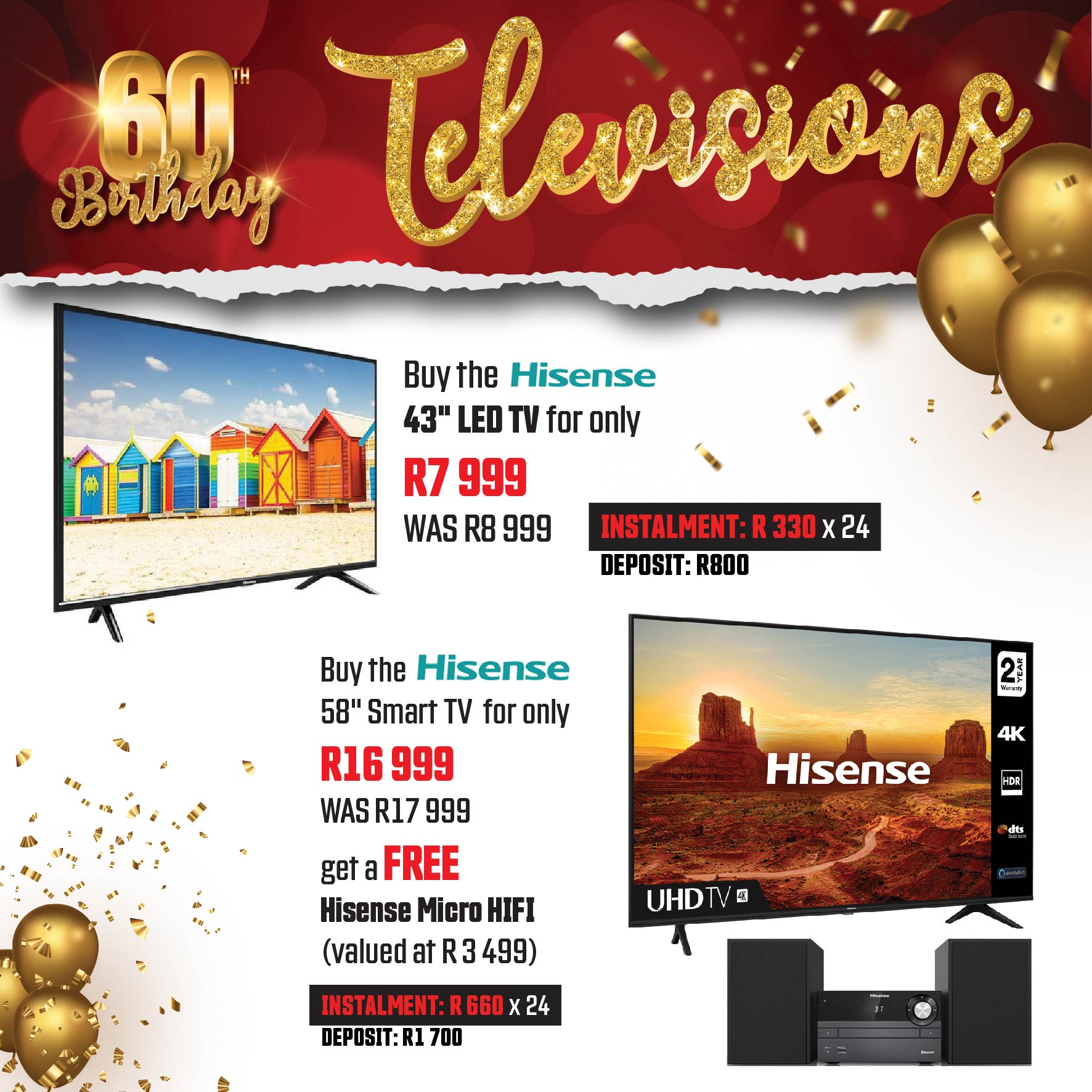 Railway Furnishers On Twitter Our 60th Celebrations Continue Great Deals On Hisense Led Or Smart Tv S Visit Any Of Our Branches This Weekend For This And More Railwayfurnishers Tvspecials Birthdaydeals Https T Co Dgm5nfkzcq